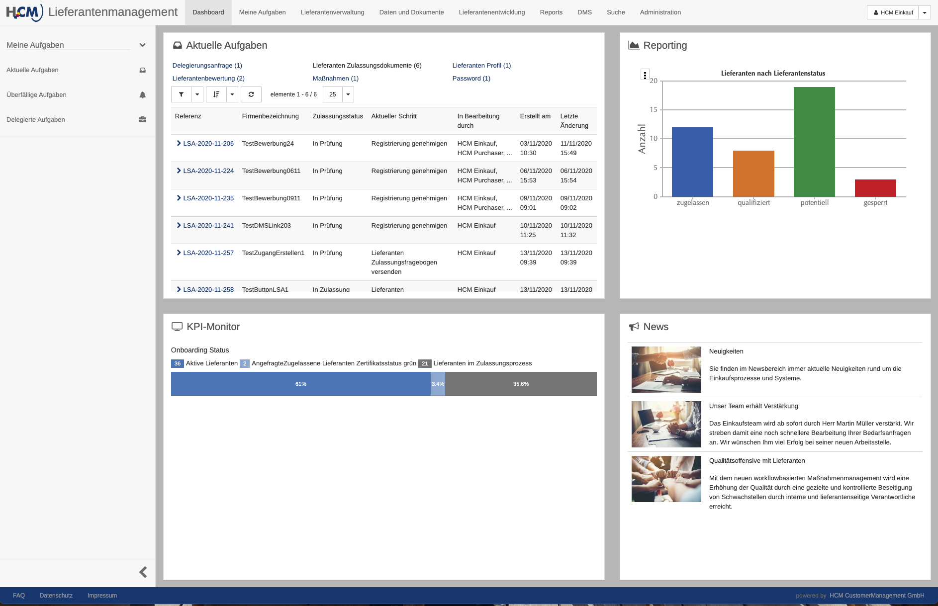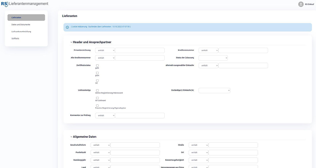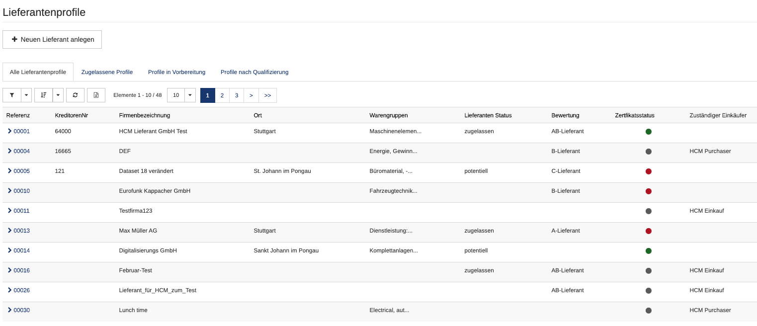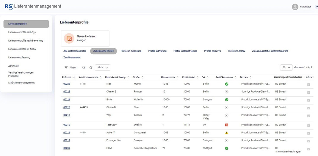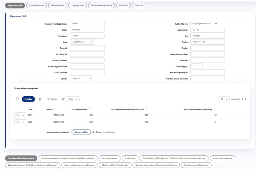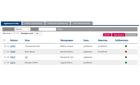Eingabe aller gewünschten Zertifikate, Fachinformationen und Dokumente im Selfservice durch den Lieferanten