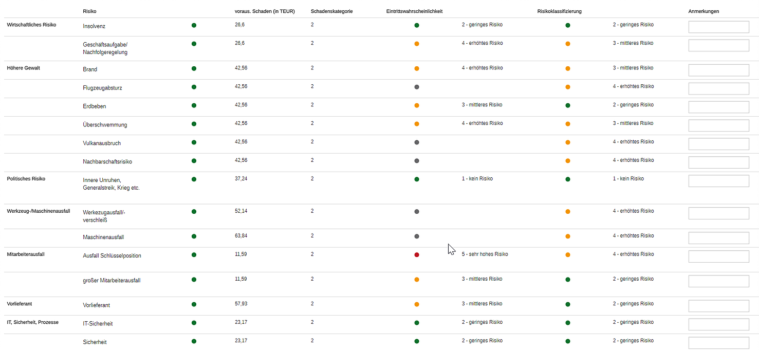 Ampelfunktion über die Summe aller Zertifikate und relevanten Inhalte in der Lieferantenansicht