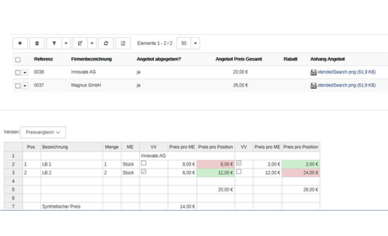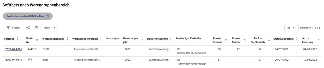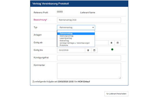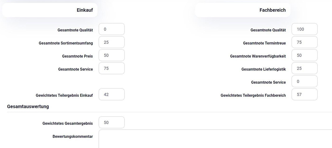Möglichkeit zur Einbindung in das Modul Lieferantenbewertung
