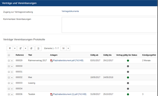 Digitale Ablage der Verträge strukturiert nach Vertragstyp