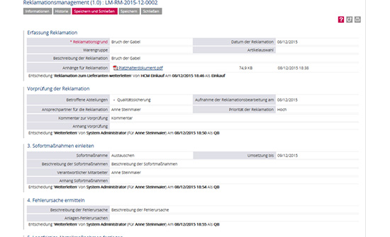 Einbindung beliebiger Reklamationsprozesse z.B. nach 8D-Methode möglich