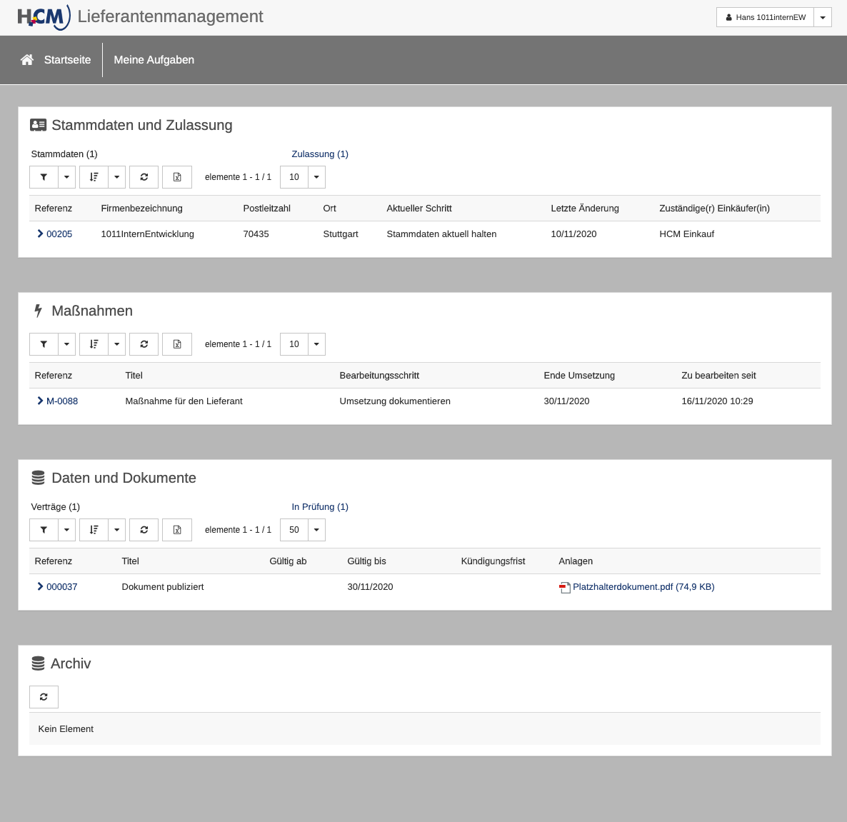 Automatische Überwachung der Gültigkeit und Erinnerung durch das System und Aktualisierung durch den Lieferanten